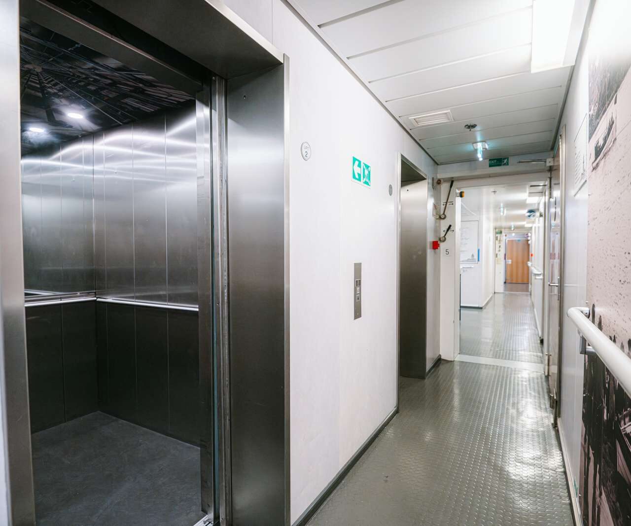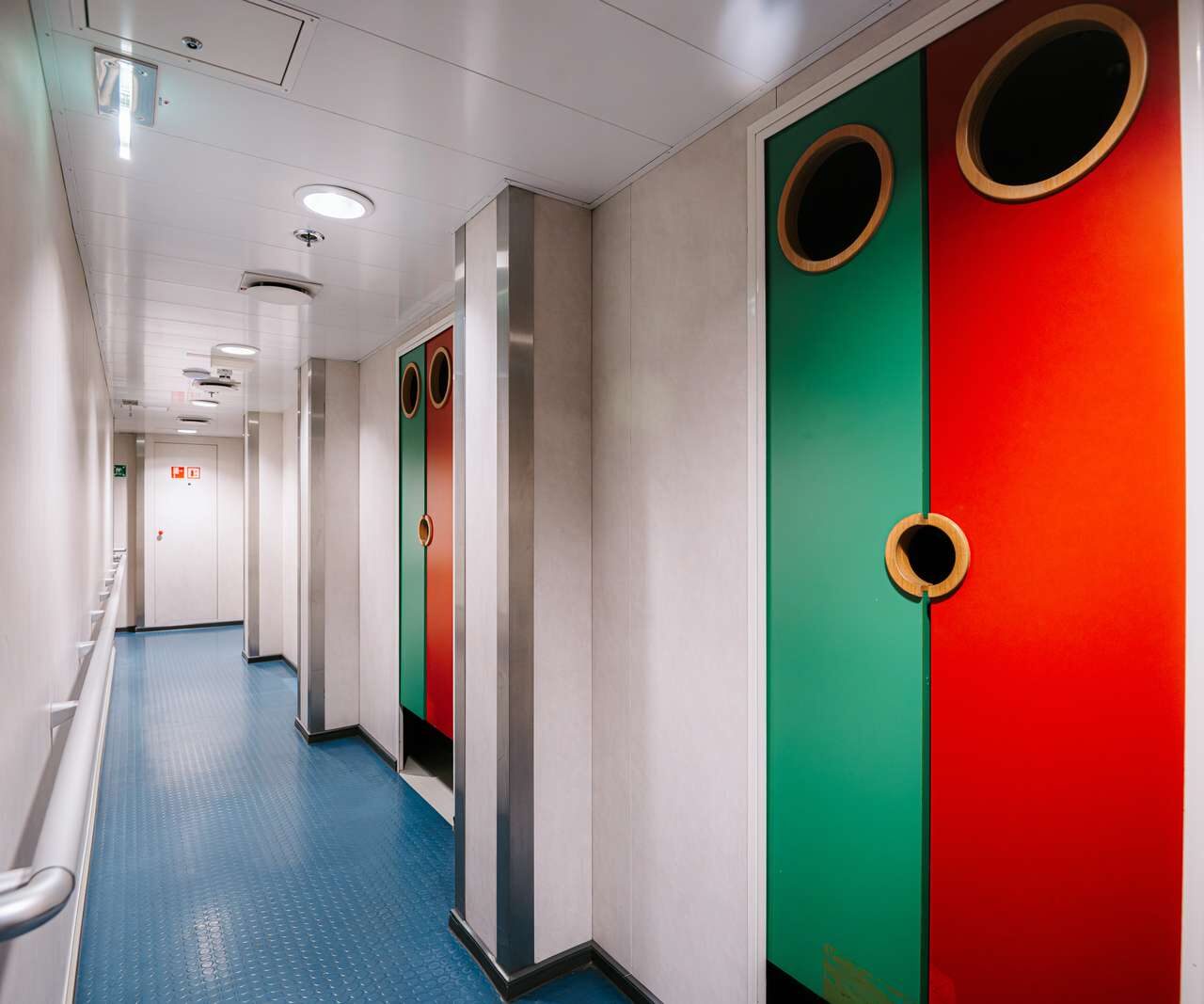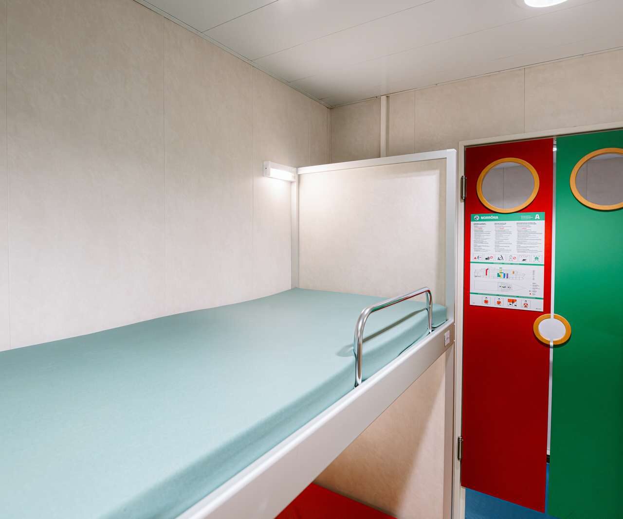 Bookable for solo travelers (gender specific) or groups of 4-6, with an optional bed linen package (€ 22) and luggage storage on deck 2 or 7, costing DKK 10 (small) or DKK 20 (large) per use: