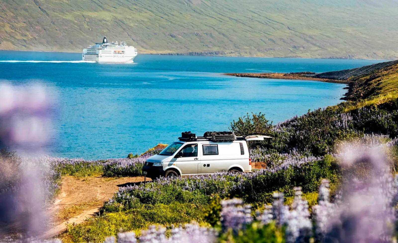 With Smyril Line, you can travel to Iceland aboard the ferry Norröna, enjoying a relaxed journey across the North Atlantic while bringing your own car, camper, or motorcycle.